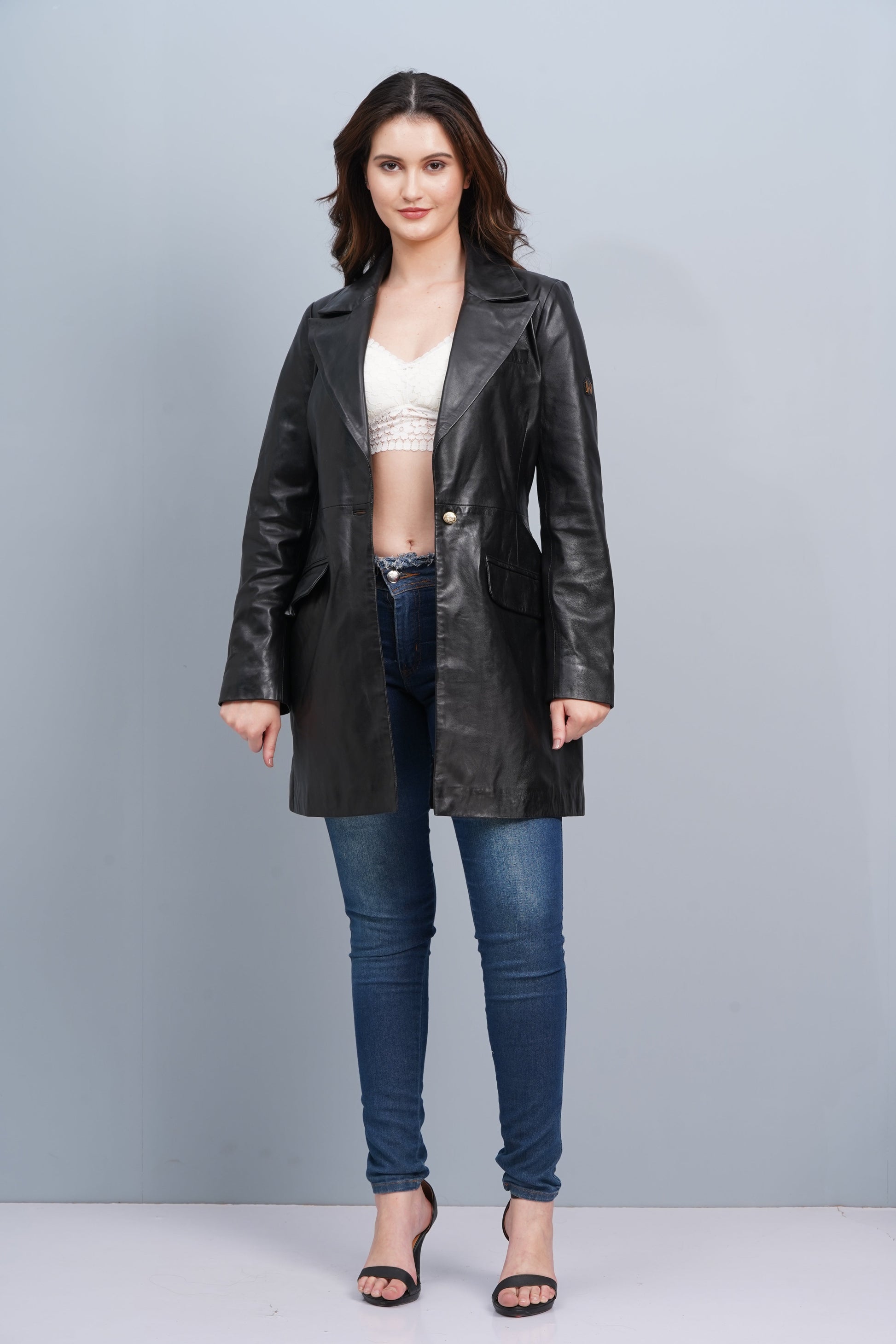 Go long on luxury in our 100% Leather EMMA long Coat. Expertly crafted to perfection in premium top-grain sheep leather, this coat feels buttery-soft to the touch but promises lasting durability. With a classic trench coat design and defined waist, this sleek below-the-knee silhouette makes a bold statement wherever you go.