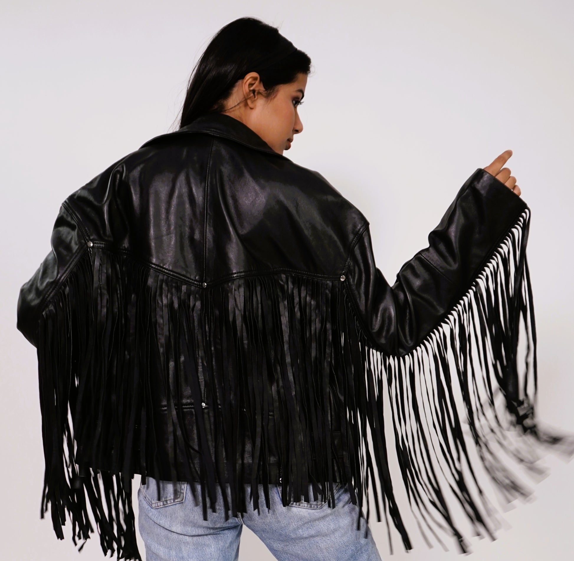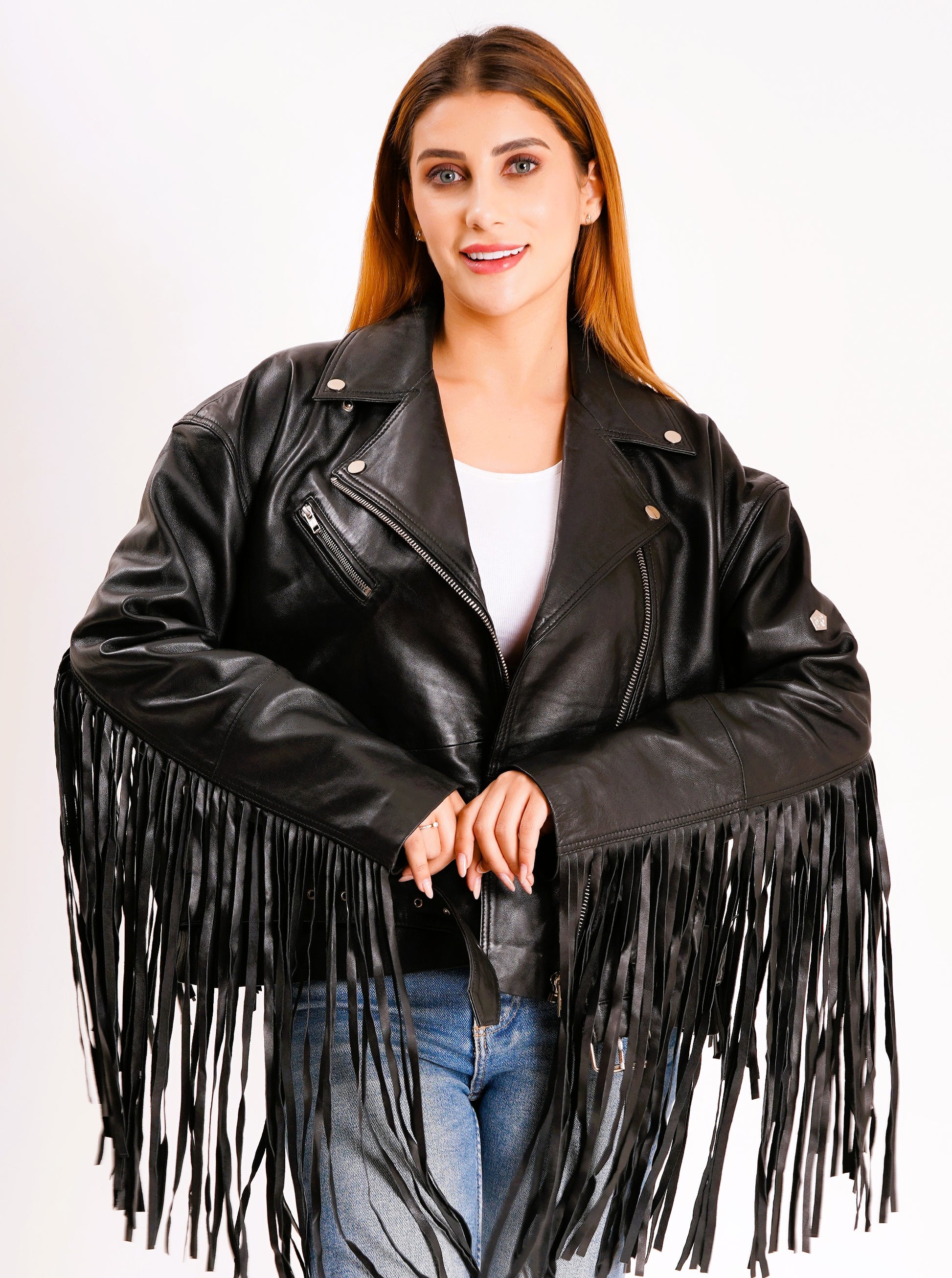 100% LEATHER OVERSIZED FINGES BIKER | WX 014