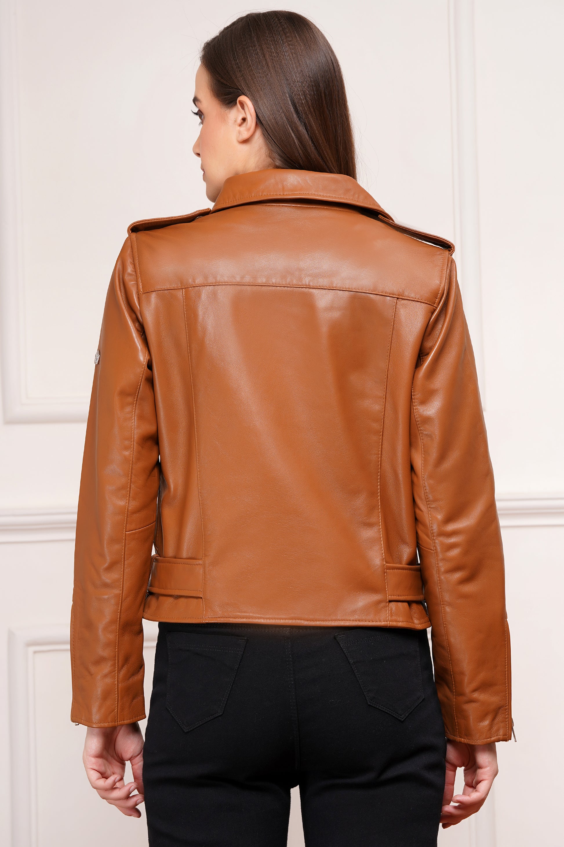 100% Leather Motorcycle Jacket - Cognac | WX114
