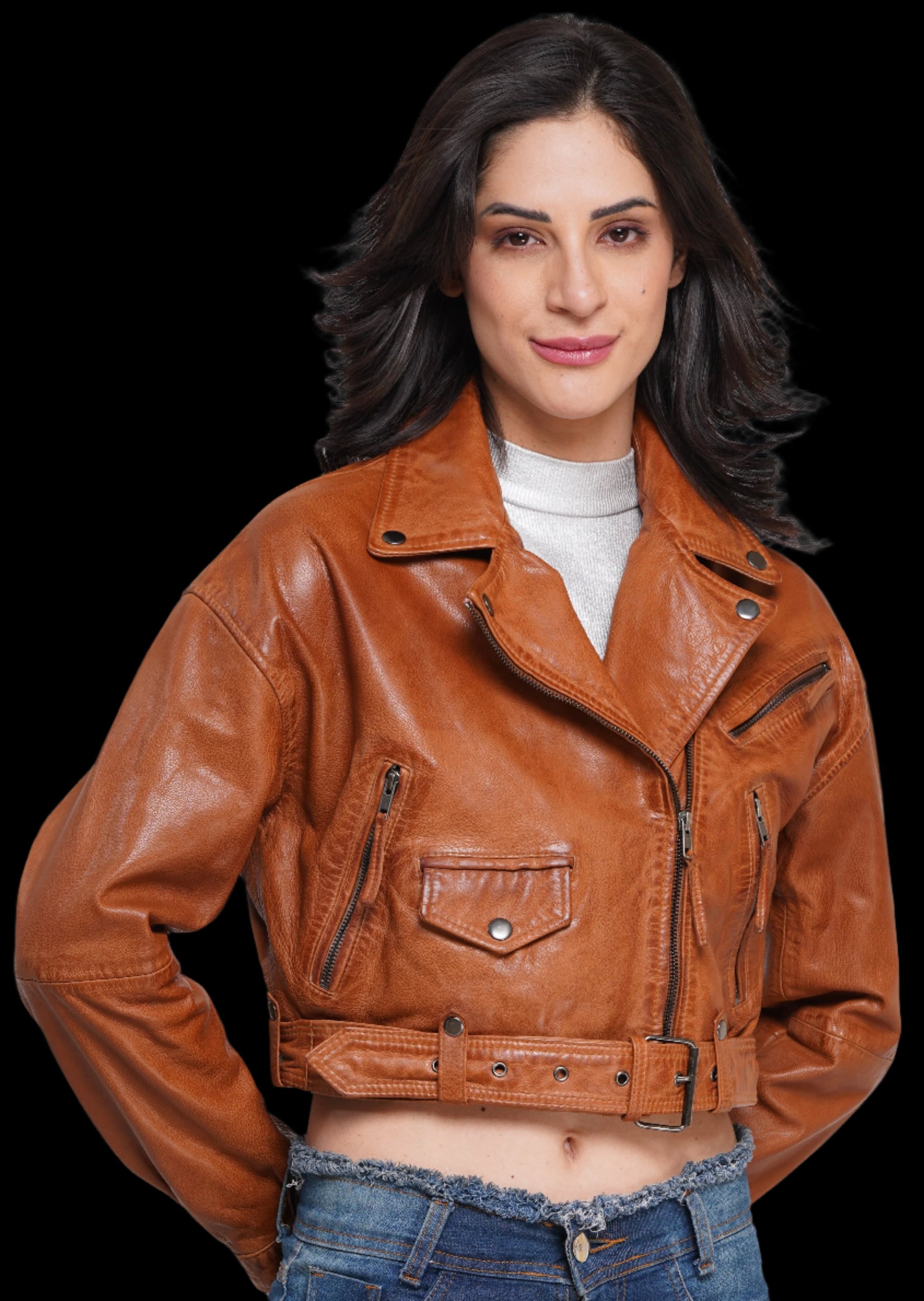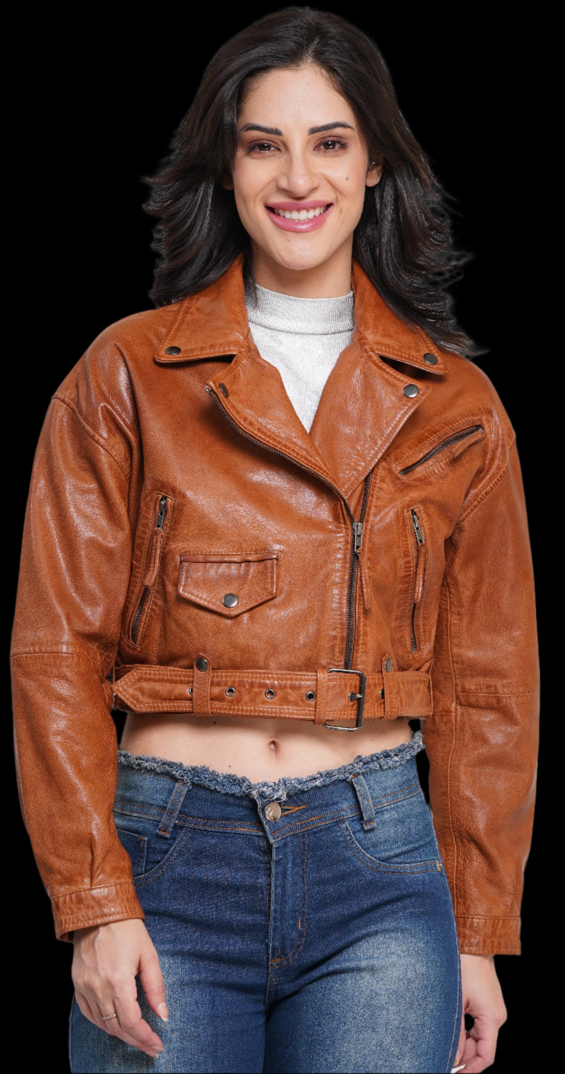 Biker chic incoming.Exquisitely crafted in buttery - soft, 100% top grain GOAT leather, our washed detailing gives this classic motorcycle jacket the perfectly brkoen-in, vintage look. GUN METAL hardware, like our robust zip details on the sleeves and pckets, and snap button lapels give this jacket a stylish edge. It's timeless investment piece (minus the investment).