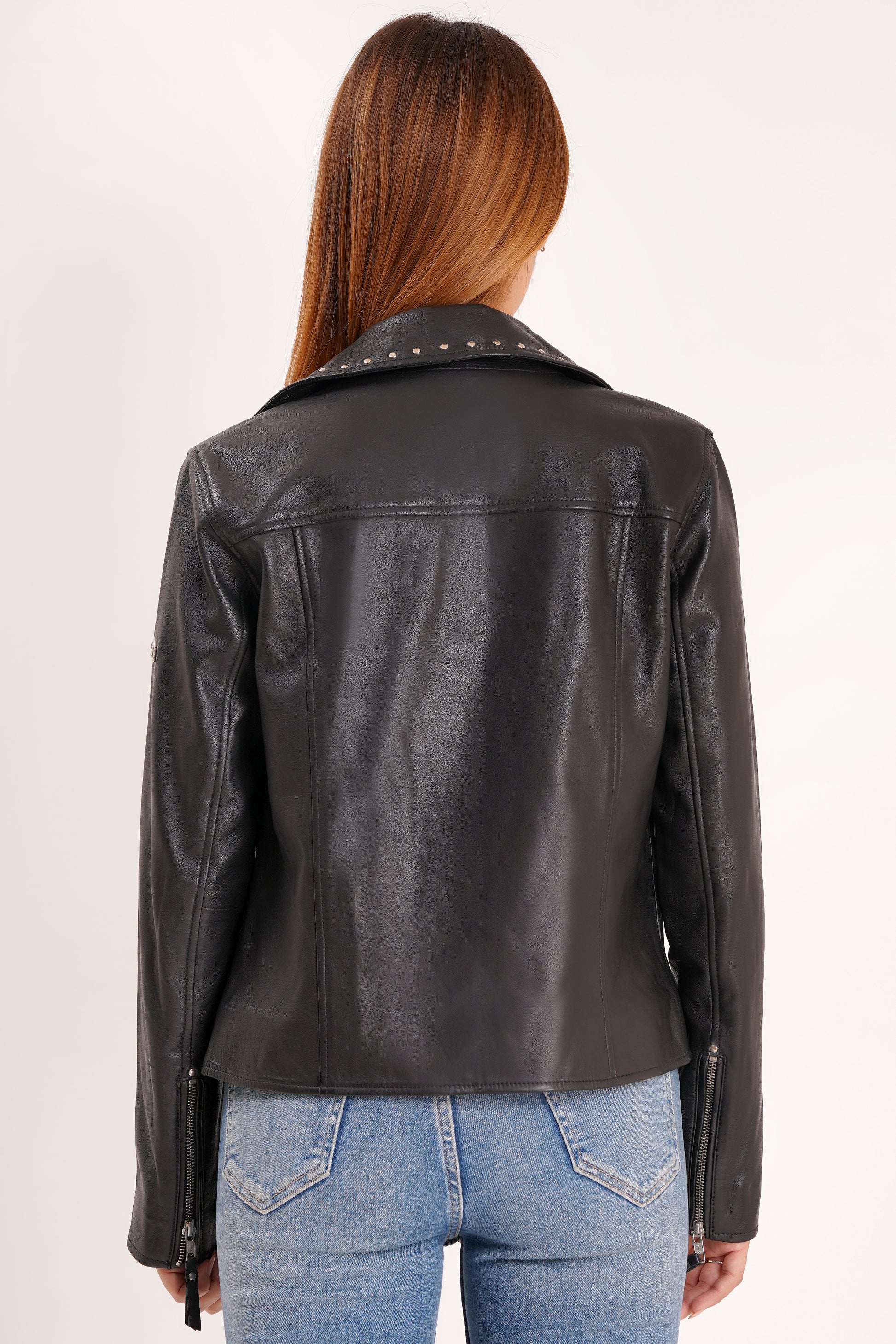 100% Real Lamp Leather Studs Collars Women Jacket | WX31