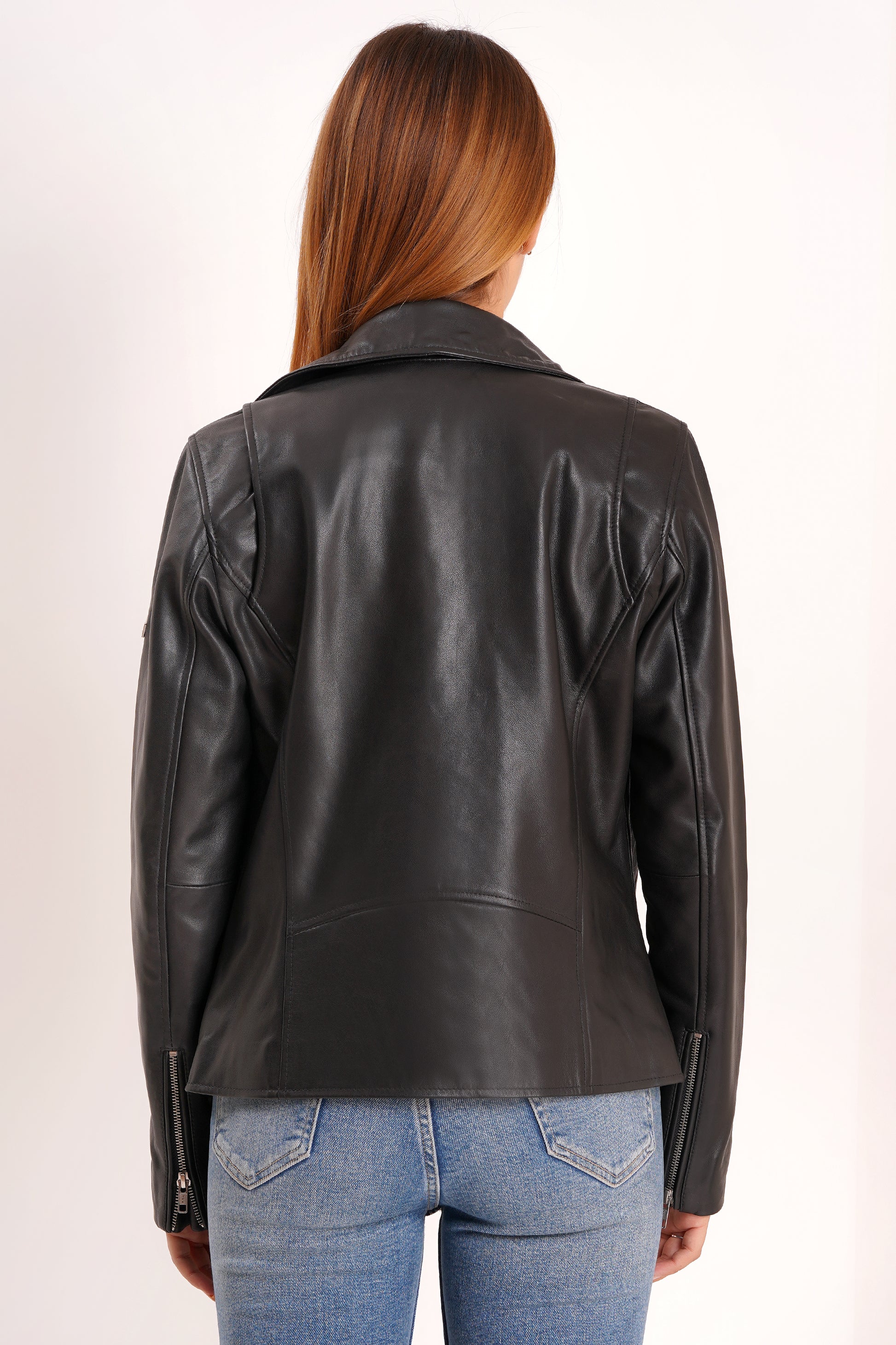 HIGH CLASS Biker chic incoming.Exquisitely crafted in buttery - soft, 100% top grain SHEEP leather, ANALINE TOUCH gives this HIGH classic BIKER jacket the perfectly brkoen-in, SHOFT touch. Silver hardware, like our robust zip details on the sleeves and pckets, and snap button lapels give this jacket a stylish edge. It's timeless investment piece (minus the investment).